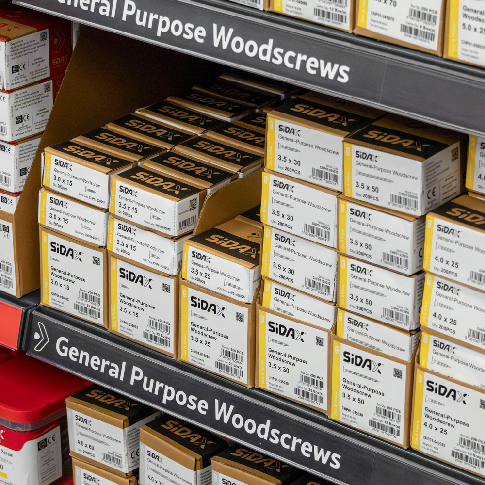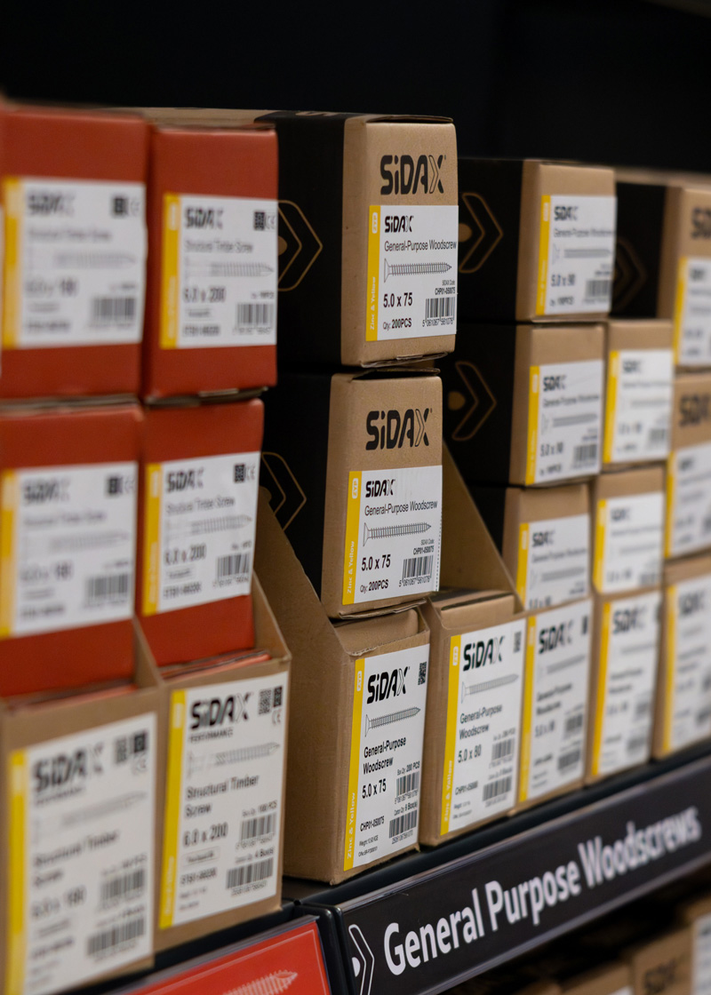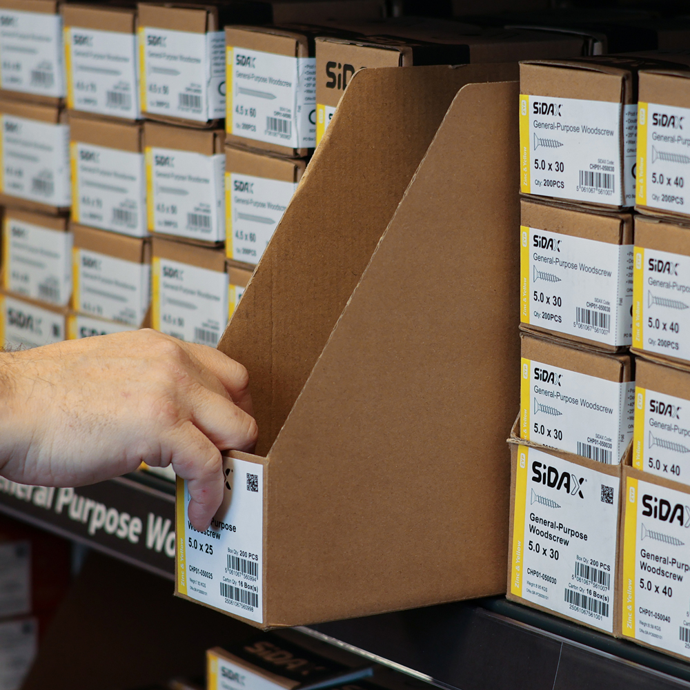 Each carton is compact, easy to manage, and stocked in smaller, controlled quantities than traditional fixings packaging.